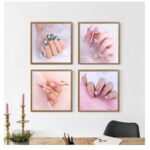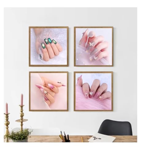 ネイルサロン用のウォールアート、30x30cmのキャンバス絵画4枚セット。ファッションフィギュアとネイルメイクアップのデザインが魅力的。フレームなしで、ホームやレディ寮の装飾に最適。