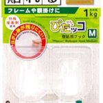 ぴたッコ 壁紙用フック Mは、日本製でフレームや額掛けに最適。耐荷重1kgで、ポリエチレン製のため軽量で扱いやすく、はがし跡が残りにくいデザインが特徴です。