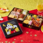 ディズニーキャラクターのミッキーをテーマにした紀文のおせち詰合せ。二段重で25品が盛り付け済み、解凍不要。和風と洋風を楽しめる人気の一品。2026年用、12月31日お届け。