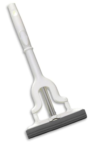 アズマのオンライン限定カラー、吸水モップ「グングン吸水激絞りワイパー・ミニ」は、全長43cm、拭き幅19cmで、簡単に絞れる設計。ホワイトのデザインが魅力的です。