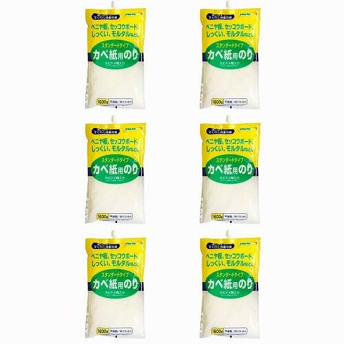 アサヒペン スタンダードタイプカベ紙用のり 1600G 765 6個セットは、壁紙貼りに最適な高品質の糊です。扱いやすく、しっかりとした接着力で、初心者にもおすすめの製品です。
