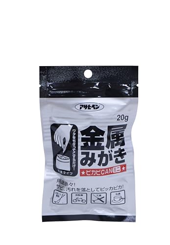 アサヒペンの金属みがきピカピカンミニ20gは、わずかにちぎったワタでこするだけで簡単に錆取りや汚れ除去ができる日本製の研磨用品です。手軽に金属をピカピカにすることが可能です。