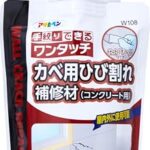 アサヒペンの充填材、ワンタッチカベ用ひび割れ補修材200ml(ライトグレー)の2個セットです。手絞りパウチとヘラ付きで使いやすく、コンクリートやモルタルのひび割れを低臭で補修できます。雨水の侵入防止効果もあり、日本製です。