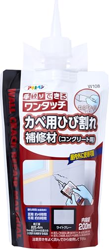 【セット買い】アサヒペン 充填材 ワンタッチ カベ用ひび割れ補修材 200ml W108 ライトグレー 手絞りパウチ ヘラ付き 壁用 コンクリート モルタル ひび割れ 補修 低臭 雨水の侵入防止 日本製 2個セットの製品情報