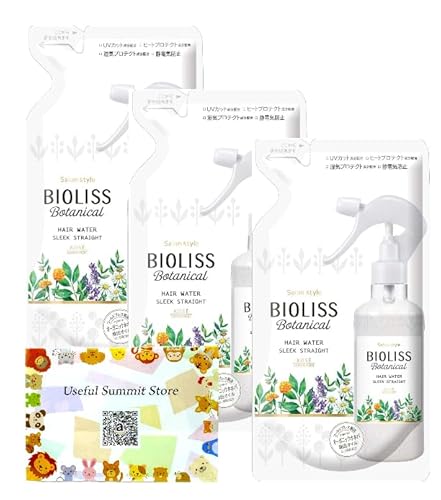 SALON STYLEビオリスボタニカルヘアウォーターは、230mlの詰め替え用で、ポケットティッシュ付きです。スリークストレート効果で髪をさらさらに。