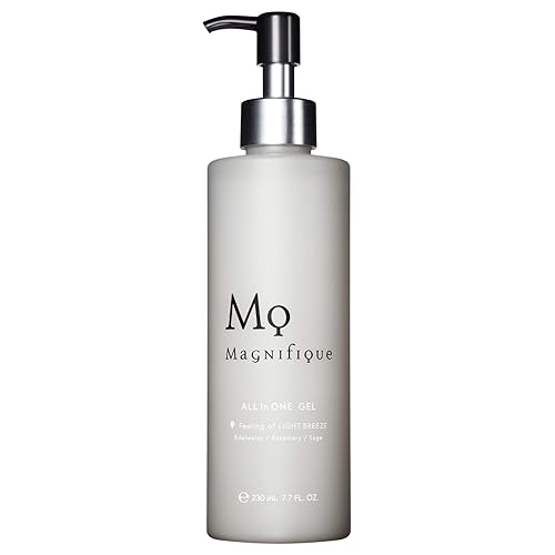 マニフィーク オールインワンジェルは、230mLのポンプ式で、化粧水、クリーム、保湿を兼ね備えたメンズスキンケア製品です。手軽に使え、肌をしっかり保湿します。