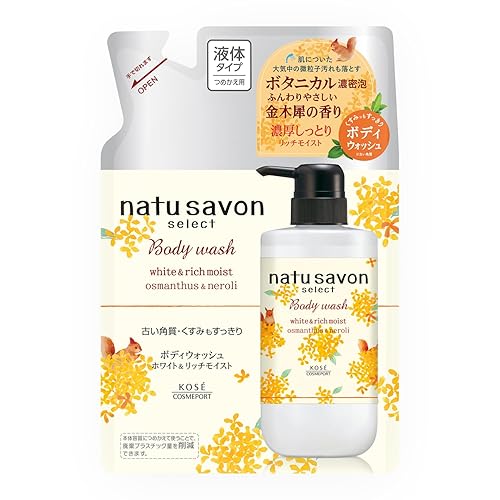 ソフティモ KOSE ナチュサボン セレクト ホワイト ボディウォッシュは、金木犀の香りのリッチモイストタイプ。360mLの詰め替え用で、角質ケア効果もあり、しっとりとした洗い上がりが魅力です。