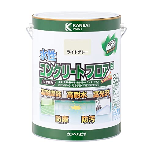 カンペハピオ ペンキ 塗料 水性 つやあり 床用 耐摩耗性 高耐水 高光沢 防塵 防汚 水性コンクリートフロア用 ライトグレー 3.4L 日本製 00467650651034