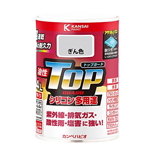 カンペハピオ ペンキ 塗料 油性 つやあり シリコン樹脂 多用途 超速乾 さび止め剤入り トップガード ぎん色 0.4L 油性塗料 日本製 00017640461004の製品情報