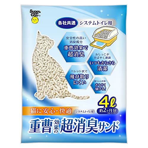 システムトイレ用の重曹効果により、強力な消臭を実現した超消臭サンド。4Lサイズで、臭いを吸収・中和し、快適なトイレ環境を提供します。無香料で、ペット用にも最適です。