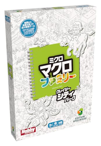 ホビージャパンのミクロマクロ:ファミリーは、1-4人用のボードゲームで、プレイ時間は15-45分、対象年齢は6才以上です。楽しいイラストとパズル要素が魅力のゲームです。