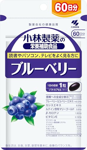 小林製薬のブルーベリーサプリは、視界をサポートする成分、アントシアニンを豊富に含んでいます。60粒入りで、目の健康維持に役立ちます。毎日の健康管理に最適です。