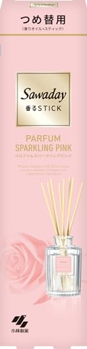 サワデー香るスティック 消臭芳香剤 パルファムスパークリングピンクは、70mlの詰め替え用です。フレッシュな香りが空間を明るくし、消臭効果もあり、長時間持続。おしゃれなデザインでインテリアにもマッチします。