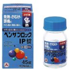 【指定第2類医薬品】ベンザブロックIP錠は、風邪やインフルエンザの症状を緩和するための錠剤です。成分が解熱、鎮痛、抗ヒスタミン作用を持ち、45錠入りで、成人用に設計されています。