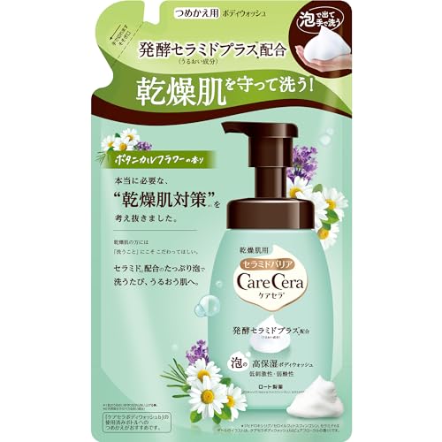 ケアセラの泡の高保湿ボディウォッシュは、つめかえ用で385ml、10%増量。ボタニカルフラワーの香りが心地よく、肌をしっとり保湿しながら洗います。デリケートな肌にも優しい処方です。