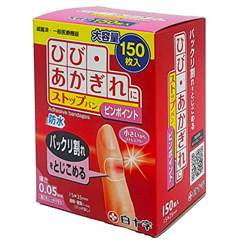 白十字 ストップバン ピンポイントは、150枚入りのひびあかぎれ対策に最適な防水バンドです。大容量であり、一般医療機器として安心して使用できます。