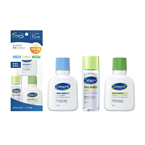 セタフィル フェイスケア乳液トライアルセットは、ジェル洗顔料59mL、化粧水30mL、保湿乳液59mLを含む敏感肌向けの低刺激性スキンケアセット。乾燥肌や赤ちゃんにも適し、出産祝いなどのギフトに人気です。