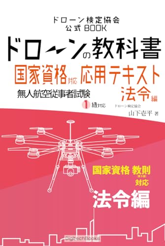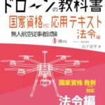 『ドローンの教科書 応用テキスト法令編』は、無人航空従事者試験1級に対応した国家資格取得を目指すためのテキストです。法令に関する知識を体系的に学べる内容で、ドローン検定の公式教材です。