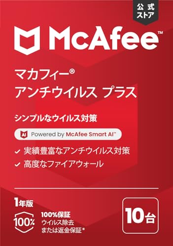 マカフィー アンチウイルス プラス 1年10台版 2025は、進化する脅威からリアルタイムでPCを保護します。ウイルス、マルウェア、フィッシングから守り、安心のセキュリティを提供します。