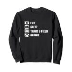 Eat Sleep トラック&フィールド リピートは、陸上競技トレーナー向けのユニークな製品です。トレーニングのモチベーションを高めるデザインが特徴で、選手の情熱を象徴しています。
