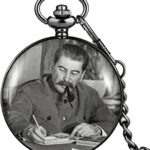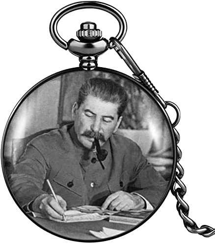 メンズ懐中時計。ソビエト英雄スタリンの肖像が特徴。クォーツ式で、チェーンペンダント付き。アートとしての価値が高く、コレクターやギフトにも最適。