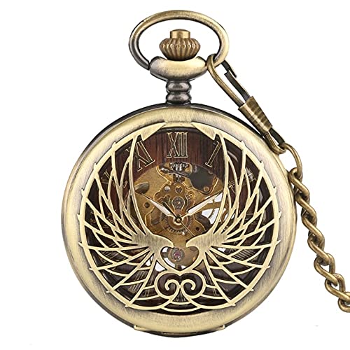 スチームパンクスタイルのブラック/ブロンズ中空フェニックス彫刻機械式懐中時計。ローマ数字ディスプレイ、ピンチェーン付き。レトロなデザインでコレクター必見のアイテム。
