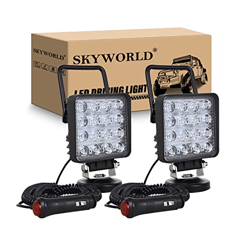 / SKYWORLD 2個 LED作業灯 4インチ 48W 角型 LEDワークライト 磁石ステー付き 広角60度 タイプ シガーソケット式 角度調節可能 防水 LED投光器 作業灯 LED 集魚灯 12V/24V パックランプ 船舶 トラック