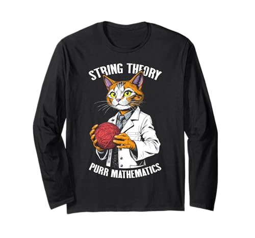 弦理論や猫をテーマにした面白い長袖Tシャツ。物理学や数学好きな科学者にぴったり。ユニークなデザインで、カジュアルな日に最適。クオリティ高い素材使用で、着心地も抜群。