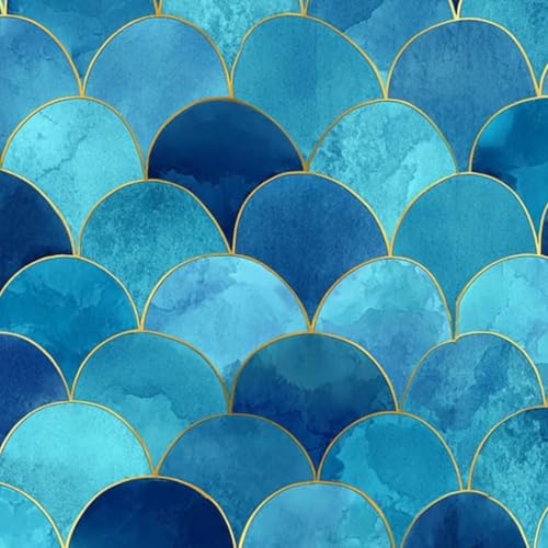 壁紙 45cm x300cm 剥がせる 青い海の波模様 水彩画スタイル 金のディテール 防水・汚れ防止・防油 多機能 テーブルや収納に最適 賃貸OK DIYにもおすすめ