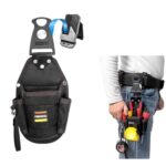 腰袋、釘袋の快速着脱ツールベルトバッグ。回転フック付きで落下防止。充電ドリルホルダー&分離ポーチ付き。軽量・防水で現場作業やDIYに最適。
