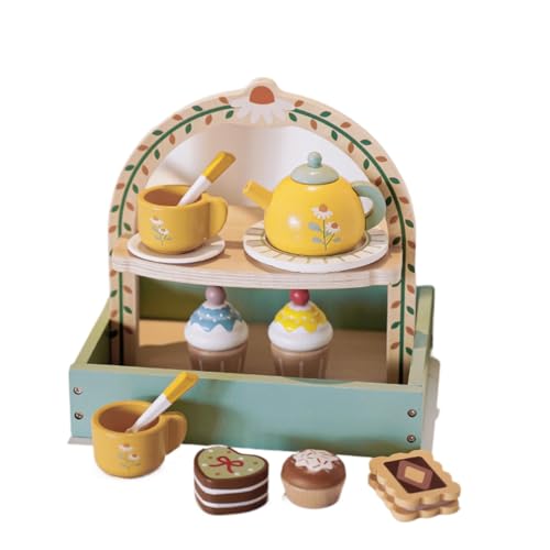 木製の二段デザートスタンド付きティーセットおもちゃ。ごっこ遊びやおままごとに最適で、早期教育にも役立ちます。手軽に持ち運び可能で、親子での楽しい遊びを促進。3歳からの女の子への誕生日プレゼントにおすすめ。