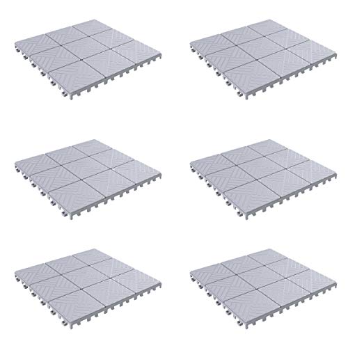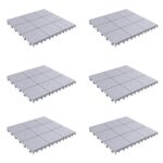 Pure Gardenのポリプロピレンインターロッキングパティオデッキタイル6枚パック。耐候性に優れ、バルコニーやガレージに最適なグレーの屋外フローリングです。