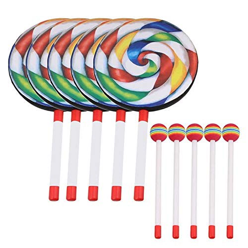 Ntcpefyの5パック8インチロリポップドラムは、カラフルなマレット付きで、音楽リズムを楽しむ子供向けおもちゃです。赤ちゃんや子供の遊びに最適!