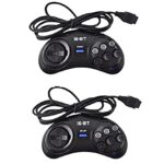 Wiseflexwiaの16ビットハンドルコントローラー、6ボタンゲームパッド。2個セット、ブラック。ゲームアクセサリーに最適なデザイン。