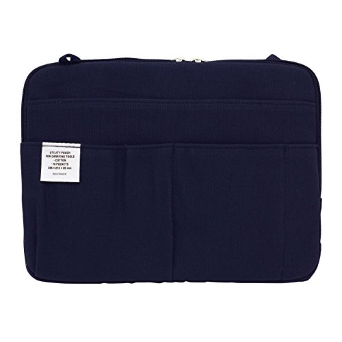 デルフォニックスのインナーキャリングB5タブレットケースは、ダークブルーのシンプルでスタイリッシュなデザインが特徴です。軽量で持ち運びやすく、タブレットや書類をスッキリ収納できます。