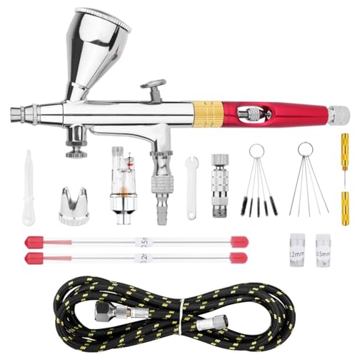 Blaiueng重力デュアルアクションミニ9Ccエアブラシは、取り外し可能な液体カップを搭載したペイント用で、ネイルスプレーやメイクアップに最適です。フェイスタトゥーやDIYにも利用可能。