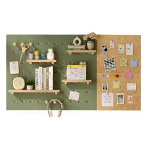 無垢材有孔ボード 壁 ディスプレイスタンド コルクボード付き デスク パンチングボード オーガナイザー収納ラック 玄関 寝室 オフィス キッチン用(Green,120cm/47in)