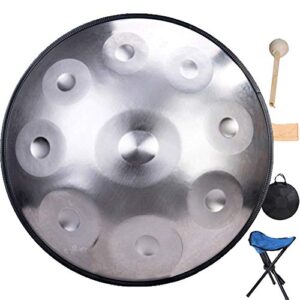 ハングドラムパーカッションインストゥルメントDマイナー9ノート窒化スチールハンドドラム22インチ(56cm)ハンドパン、ハンドパンキーハンドドラム炭素鋼材ハンドパンパーカッション器具ハンドバッグ、スタンド