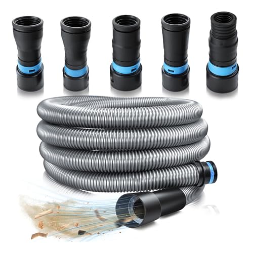 Qerwsdty 1 1/4インチ x 10フィート集じんホースキットは、家庭用掃除機システムや木工用電動工具に対応。アダプター5個付きで、簡単に接続可能。