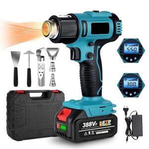 ONEVAN ヒートガン コードレス 18v マキタのバッテリー交換可能 6段風量調整 50~550℃調整 充電式ヒートガン ノズル七個付き 小型 熱風機 急速加温 充電式 軟化 加工 熱処理 DIY作業 PVCとレジンの収縮 塗料の剥離など適用 バッテリー付き