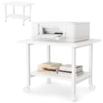 DEWEL プリンター台 2段 キャスター付き 幅48×奥行40×高さ37cm プリンターラック 卓上 デスク下 収納 プリンターワゴン 木製 総耐荷重30kg アジャスター付き コピー機台 コピー機置き台 複合機台 プリンタ台 ファックス台 プリンターカート 高価買取中