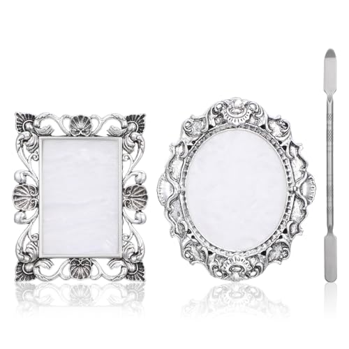 ネイルミキシングパレット2個セット。レジンネイルアート用のジェルプレート付き。パレットスティックで簡単にミキシング、メイクアップミキシングトレイとしても使用可能。シルバーのデザインでおしゃれなディスプレイにも最適です。