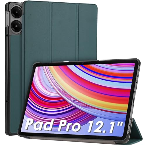 WD&CDのXiaomi Redmi Pad Pro/Xiaomi Poco Pad用タブレットケース。薄型で耐衝撃、オートスリープ機能、三つ折りスマートカバー、スタンド機能を搭載。マグネット式で便利なグリーンの保護カバー。