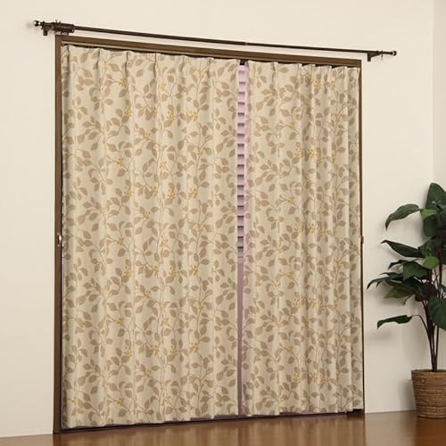 カーテン天国の遮光カーテンは、1級遮光で形状記憶加工が施されたリーフ柄。幅100cm、丈178cmの2枚組。節電、断熱効果があり、冷暖房効果を高める厚手仕様。