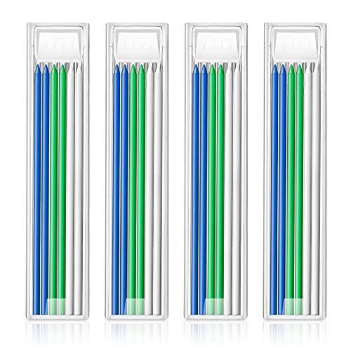 24本セットの2.8mmカラー替え芯。建設・大工用の機械式鉛筆用に適しています。白、ブルー、グリーンの色展開で、深穴木工やスクライバーのマーキングに最適です。