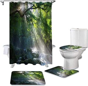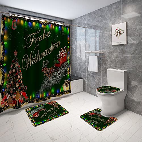 BAIBAI 4ピースセットのクリスマスシャワーカーテン。防水、滑り止めバスマット、トイレカバー付き。12フックで取り付け簡単。