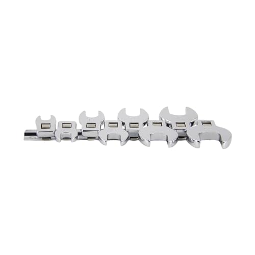 LOL-FUNの8個オープンクローフットレンチセットは、10mmから22mmまでのサイズが揃い、3/8インチドライブ対応。自動車修理や家庭用の多用途工具として最適で、緩め作業や締め付け作業に便利です。