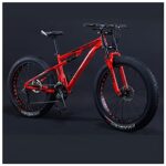 NENGGE 26インチフルサスペンションマウンテンバイク。脂肪タイヤでビーチや雪、あらゆる地形に対応。30速ギア、最大負荷200kg。赤いスポークが特徴。
