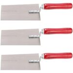 HOMSFOUのステンレス製左官こて3個セット。耐曲げ性能の高い刃と安定リベット設計で、石膏やセメントの仕上げ作業に最適。パテカッターも含まれ、プロの仕上げをサポートします。