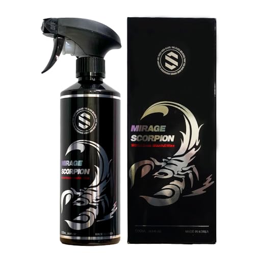 ミラージュスコーピオン水なし革命リンスレス撥水シャンプー。汚れ除去、艶出し、撥水コートが可能。フローラルの香りで4週間耐久。カー用品としてオールインワンで便利。